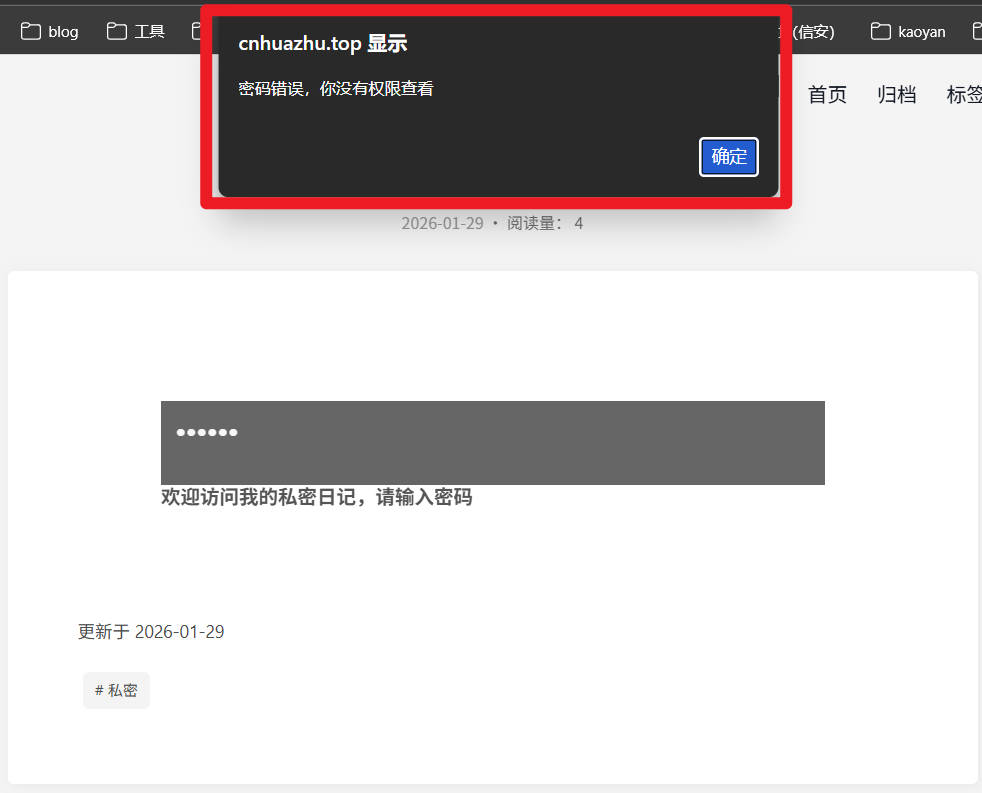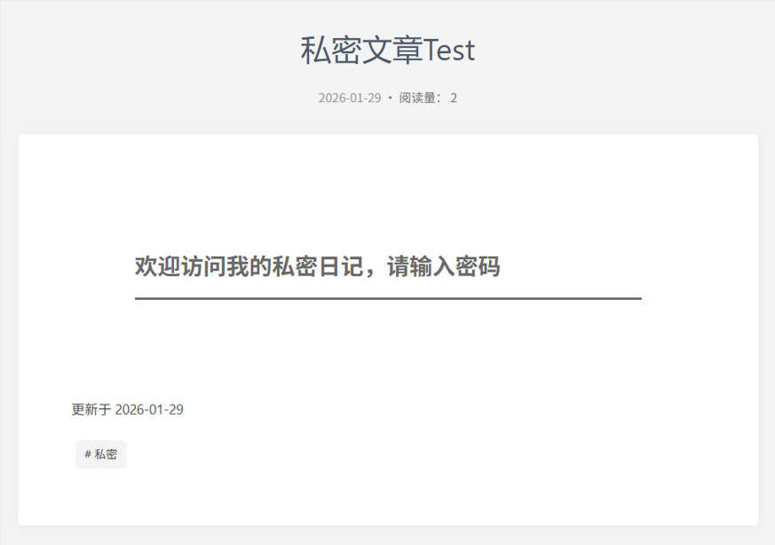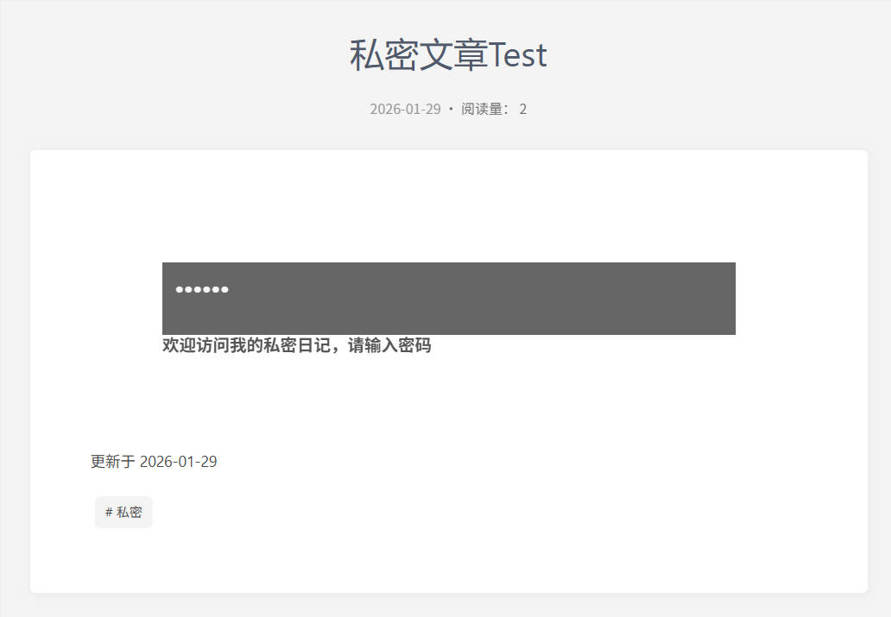 实现效果:访客点击进入文章页面后需要输入正确的密码才可以正常浏览文章内容。