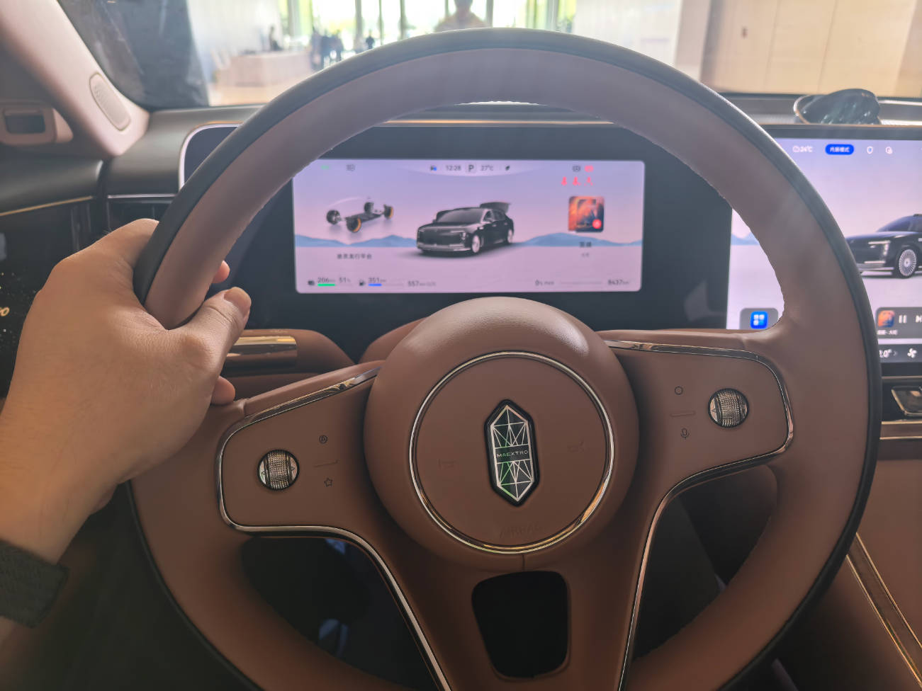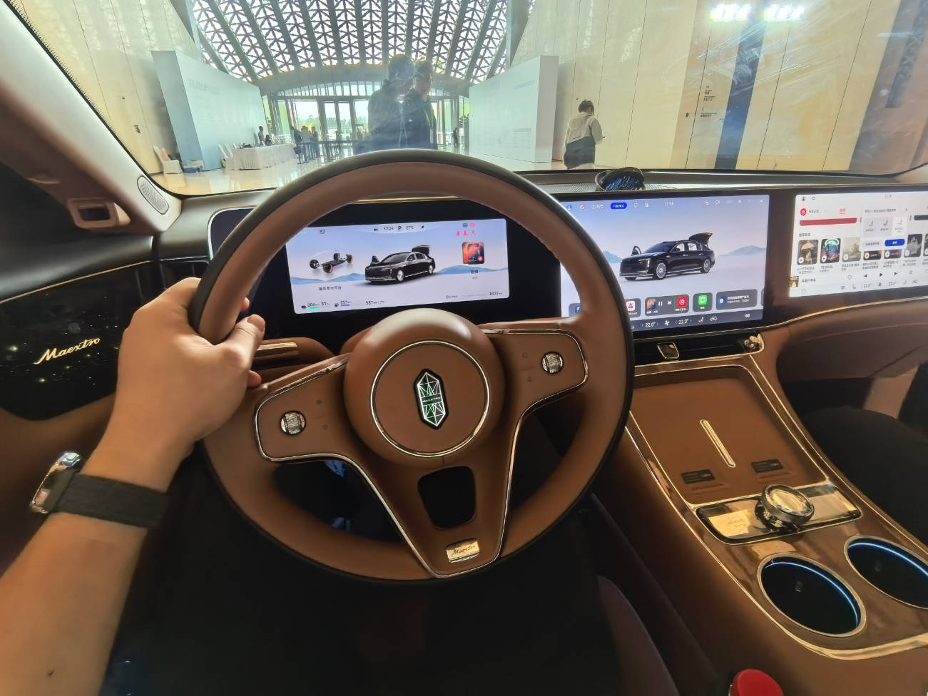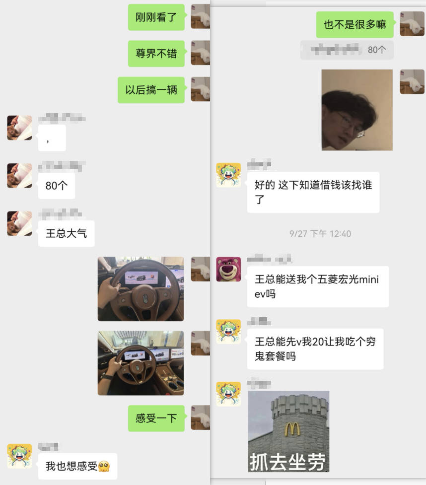 咱就是说没见过好车——准备下车的时候都不知道车门怎么开。(看着外面一双双“饥渴”的眼睛,有点子尴尬)