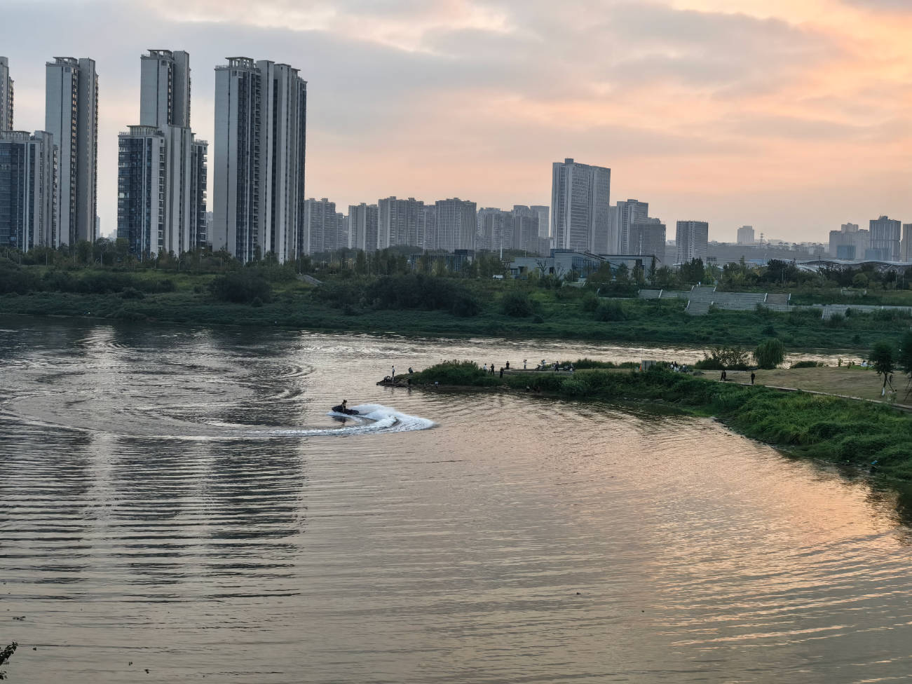 众所不知,公园的湖中有摩托艇“突突”。