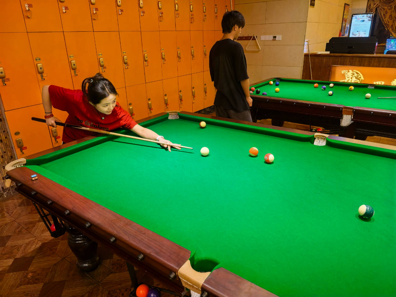 看见这里面还有打台球的地方,便拉着姐姐去玩一下。