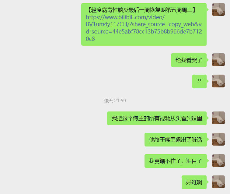 我昨晚在b站搜索了一下“自体免疫性脑炎”的词条,发现了一位up主,名叫“春风叫我渡红尘”(春风叫我渡红尘的个人空间-春风叫我渡红尘个人主页-哔哩哔哩视频)。这位up主共发布了11个视频,记录了他患“病毒性脑炎”后恢复的过程。