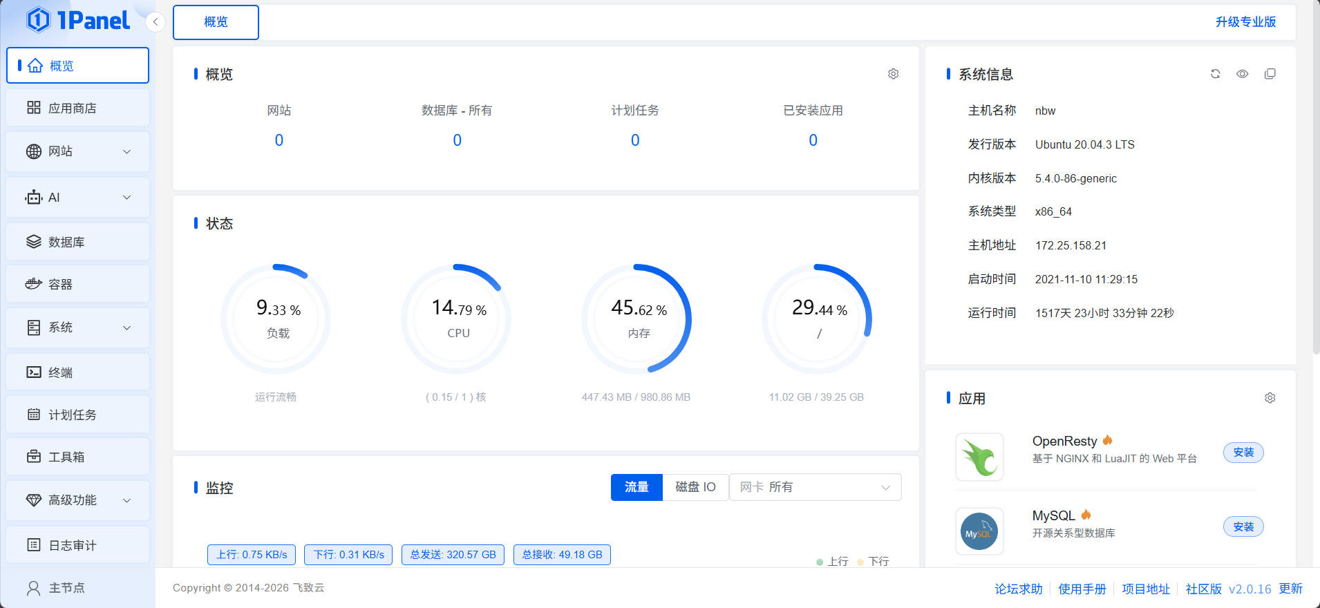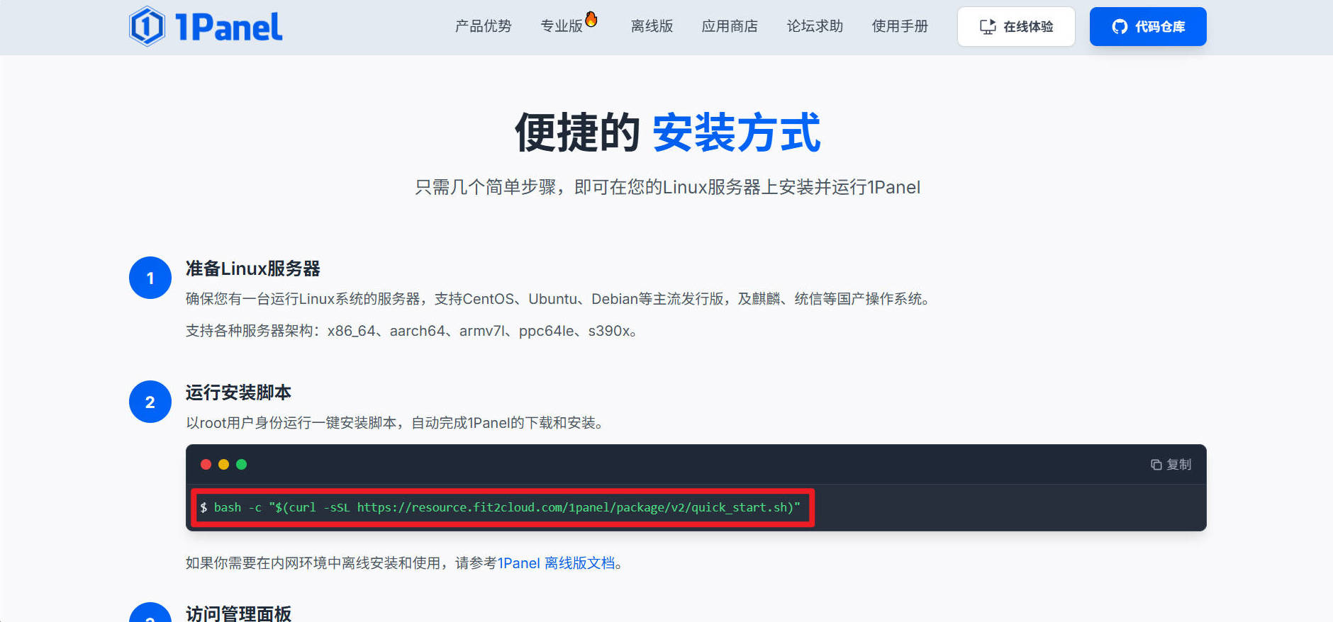1Panel官网:1Panel - 现代化、开源的Linux服务器运维管理面板
