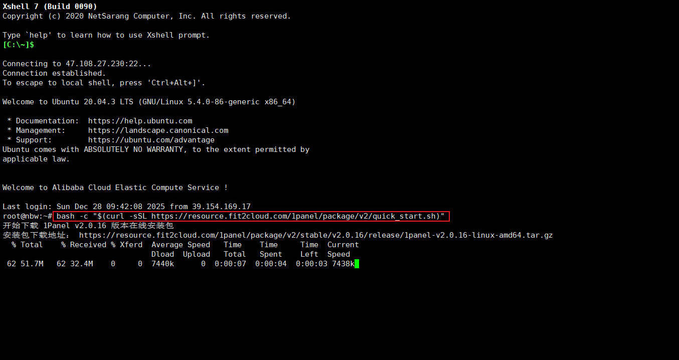 按照官网的操作,在服务器中运行安装脚本: