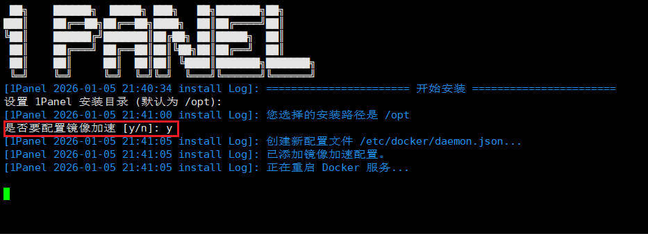 键入“y”配置镜像加速