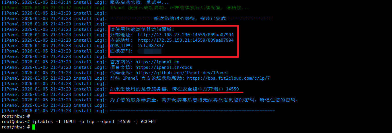 这里要记住iPanel开启的默认端口(后续操作需要),博主这里为:14559。