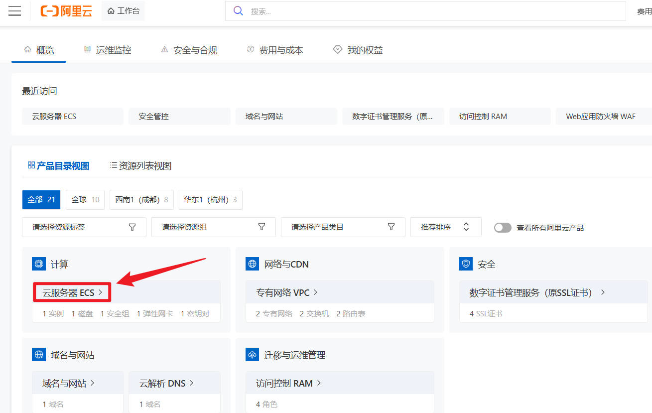 点击进入云服务器ECS模块。
