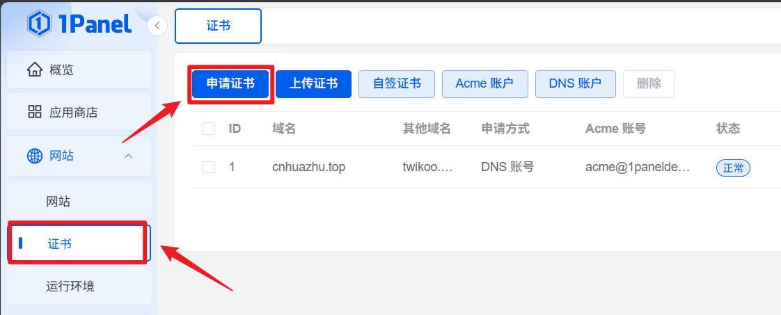 1Panel自动续期SSL证书