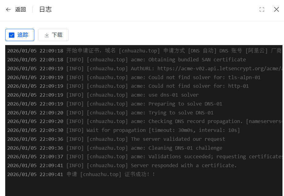 参考资料:告别重复工作!Let’s Encrypt 证书缩期至45天,1Panel 自动续期+IP/域名证书全方案_哔哩哔哩_bilibili