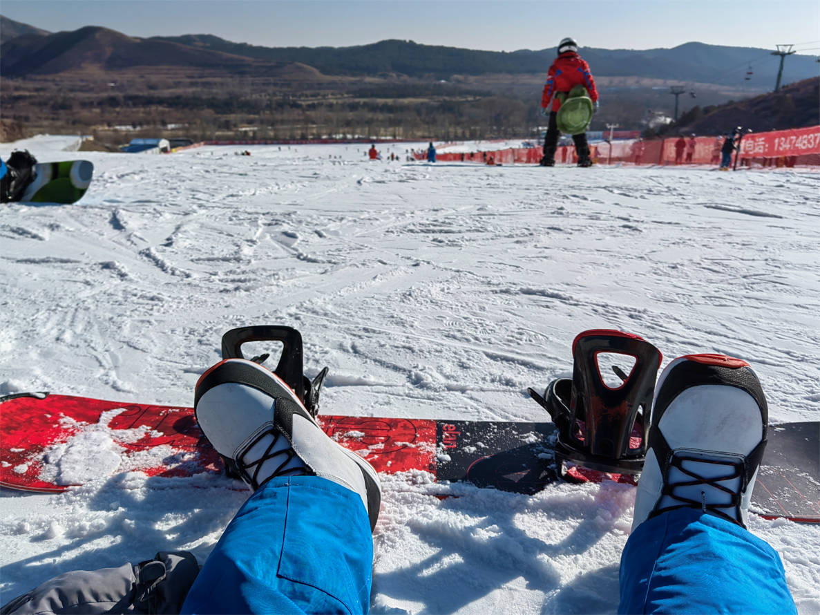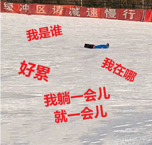 这算是我第二次滑雪。第一次玩的双板,没玩多长时间,教练只教了内八字滑下坡,好在短时间内及时掌握,避免了雪场中再诞生一位“鱼雷新星”。(鱼雷:只顾往坡下冲但刹不住的新手,是雪场的安全隐患,但不得不承认,雪场中的大部分欢乐都是这些“鱼雷”带来的)。这一次又尝了新鲜,玩起了单板。有过长期滑板经验的我又开始“蜜汁”自信,心想这俩能差多少?旱冰滑的好,冰刀自然跑。类比以往成功经验,信心百倍。可现实却给我的屁股来了狠狠的好几个巴掌。