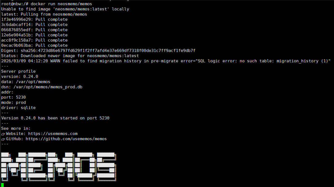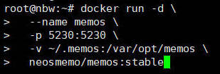 docker run neosmemo/memos命令启动MemOS服务。